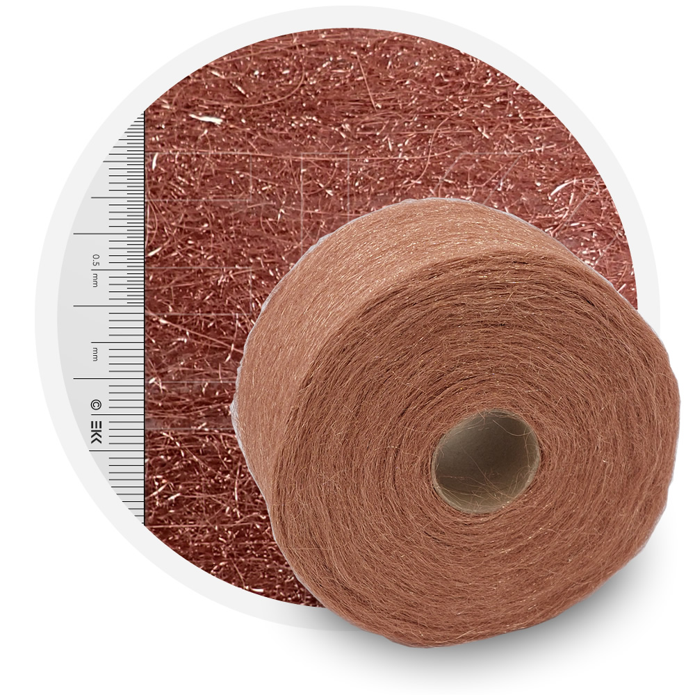 Fine copper wool for polishing chrome and injection molds. Due to its soft structure, copper wool can be applied excellently when working on sensitive surfaces. Copper wool is used in applications where normal steel wool still rubs too much.