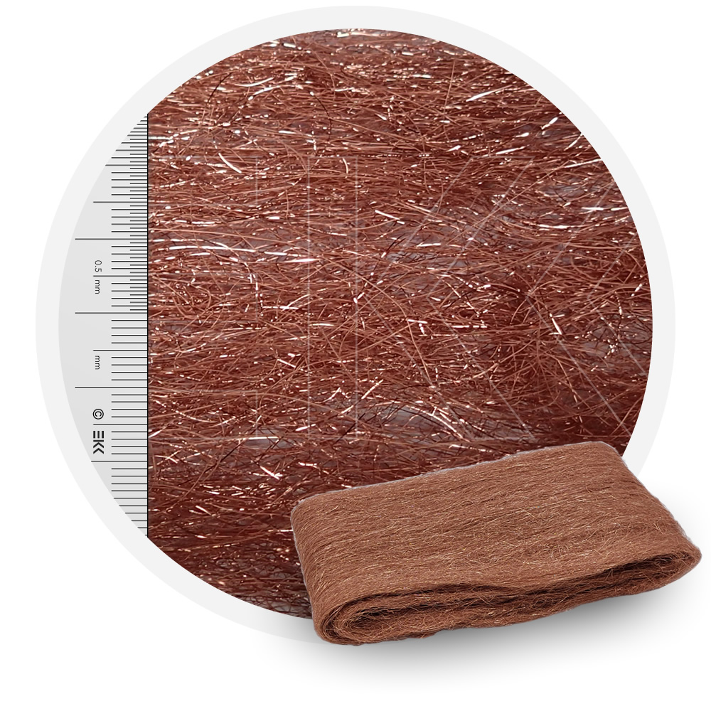 Medium fine copper wool for polishing chrome and injection molds. Due to its soft structure, copper wool can be applied excellently when working on sensitive surfaces. Copper wool is used in applications where normal steel wool still rubs too much.